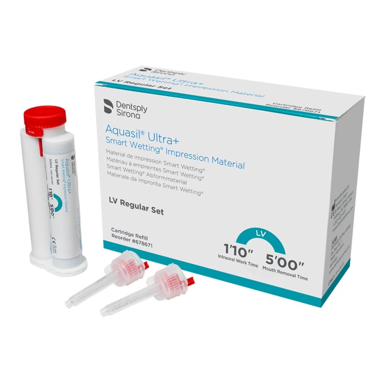 Aquasil Ultra Impression Material is a final VPS impression material indicated for use in all impression techniques. With market leading intraoral hydrophilicity and intraoral tear strength, Aquasil Ultra+ material is optimized to perform when clinicians need it most, while in the challenging oral environment, enabling for high detail reproduction while minimizing risks of voids and tears.