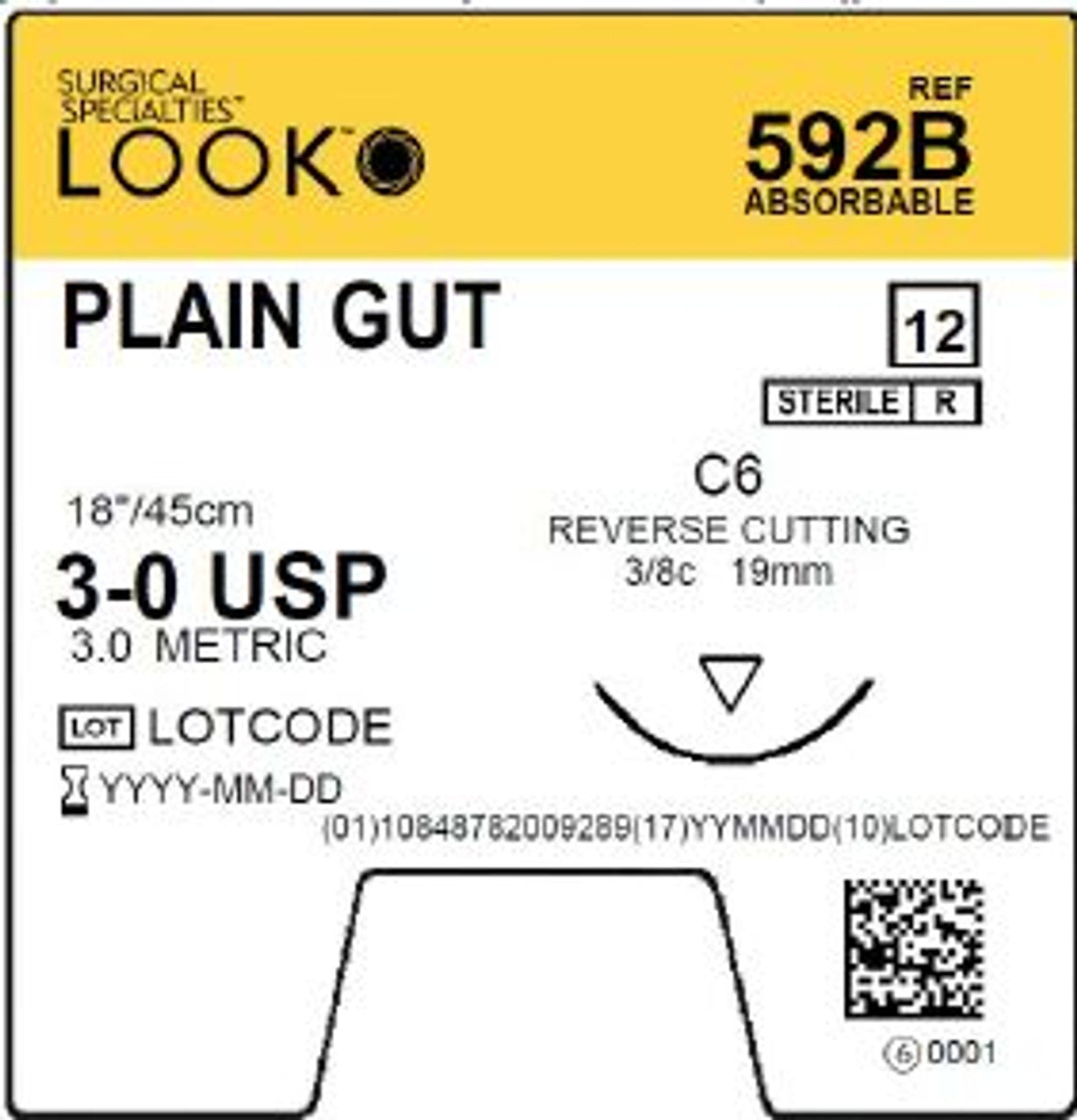 Look Sutures Plain Gut 3-0, 18" Length, C6 Needle 12/Box #592B