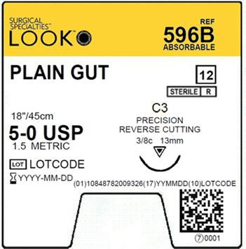 Look Plain Gut Sutures 5-0 C3 Needle - 12/Box (596B)