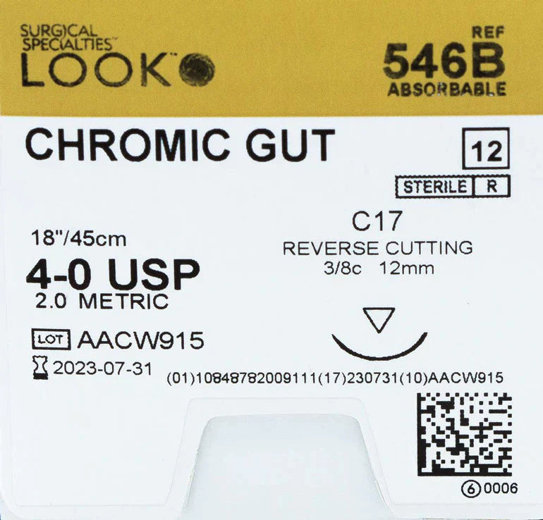Look Sutures, Chromic Gut , 4-0, 18" Length, C17 Needle, 546B, 12/Box
