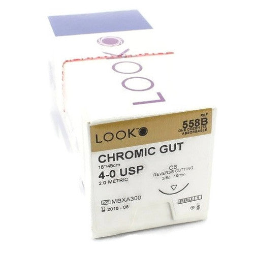 Look Sutures Chromic Gut, 4-0, 18" Length, C6 Needle 12/Box #558B