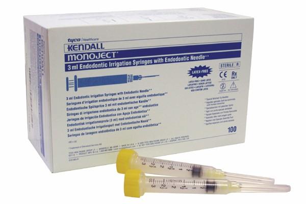 Monoject Endo Irrigation Syringe with Needles 27G Yellow 100/Box #8881513850