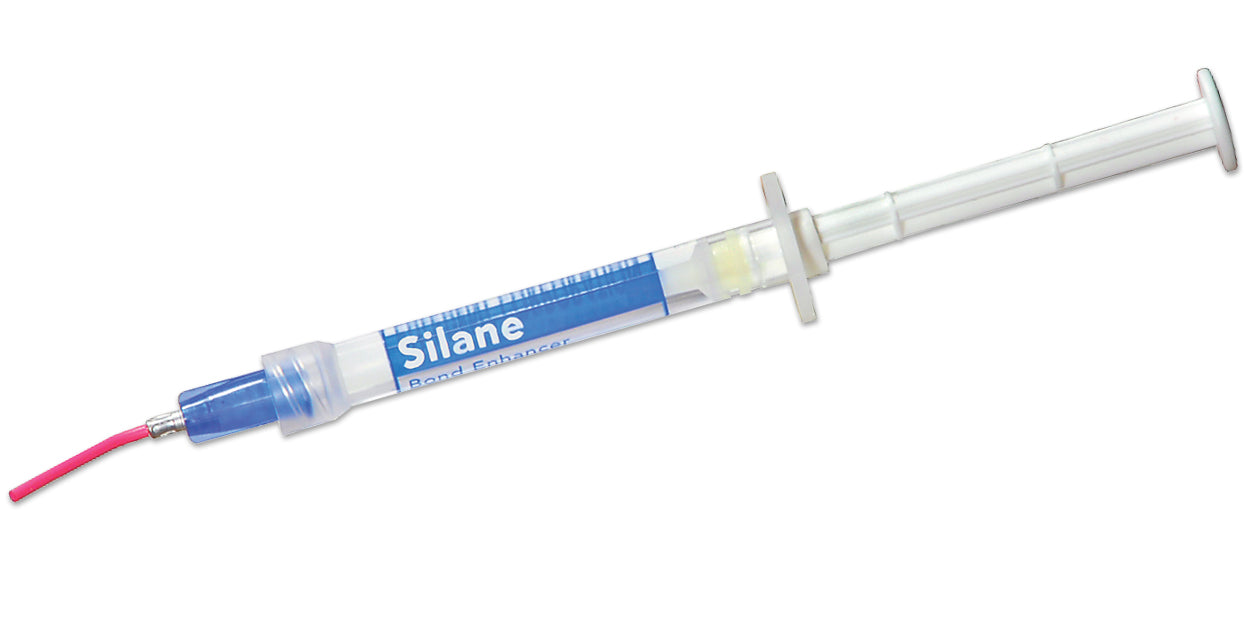 This single component material increases the bond strength of organic resins, such as composites and resin cements, to porcelain. Apply silane to the etched and dried porcelain surface. Conveniently dispenses one drop at a time from the syringe.
