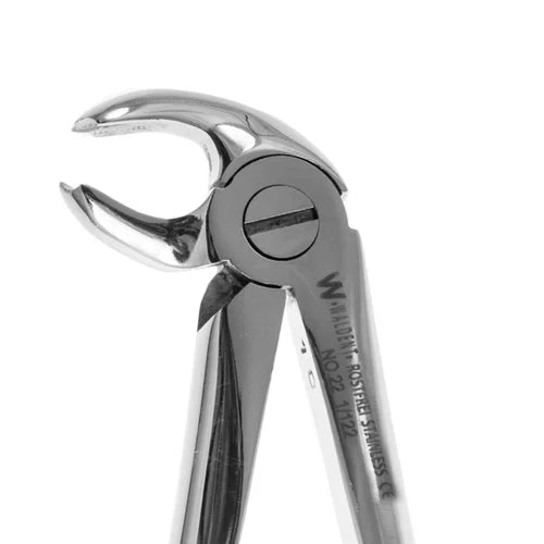 Lower molar extraction forceps no 22 with pointed buccal and lingual beaks is used for extraction of mandibular molars - both right and left.